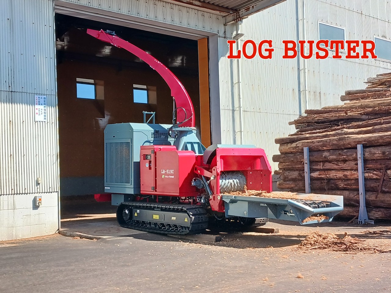 ログバスター(クローラータイプ)は、山土場での破砕に最適なコンパクト設計ながら、優れた処理能力を発揮します。重量7~9トン級(LB-512C約9,000 kg)の自走式モデルは、最大径φ500 mmの原木を効率的にチップ化。輸送時の全長・全幅・全高いずれも最小限に抑え、重機運搬車両への搭載が容易です。ラジコン操作や遠隔排出シュートにより、狭小な山土場でも安全かつ高生産性な作業を実現します。