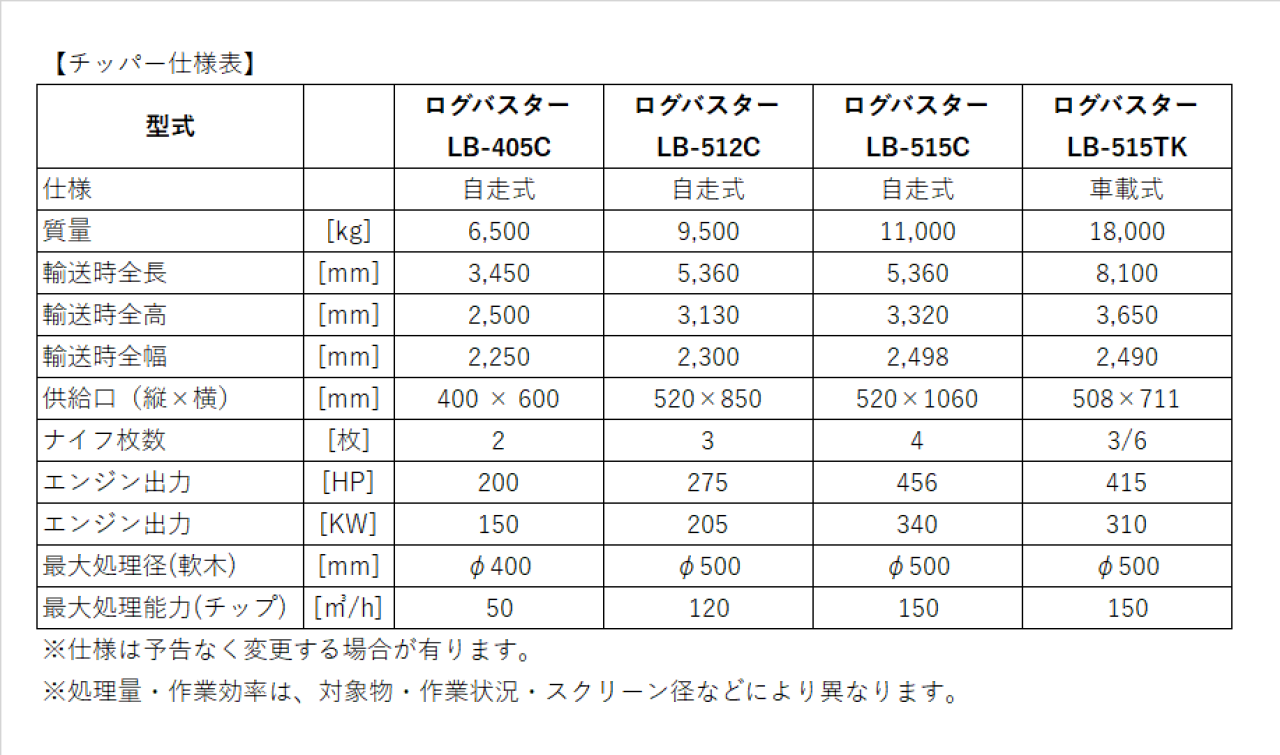 ドラム式チッパー ログバスター LB-512C/515C/515TK